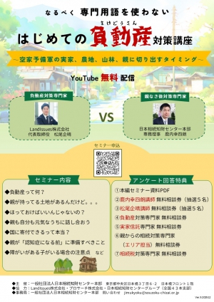 受付中セミナー情報WEBセミナー 無期限延長決定!なるべく専門用語を使わない はじめての「負動産(まけどうさん)」対策講座
