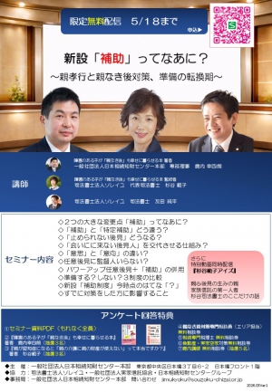 受付中セミナー情報WEBセミナー 新設「補助」ってなあに? ~親孝行と親なき後対策、準備の転換期~